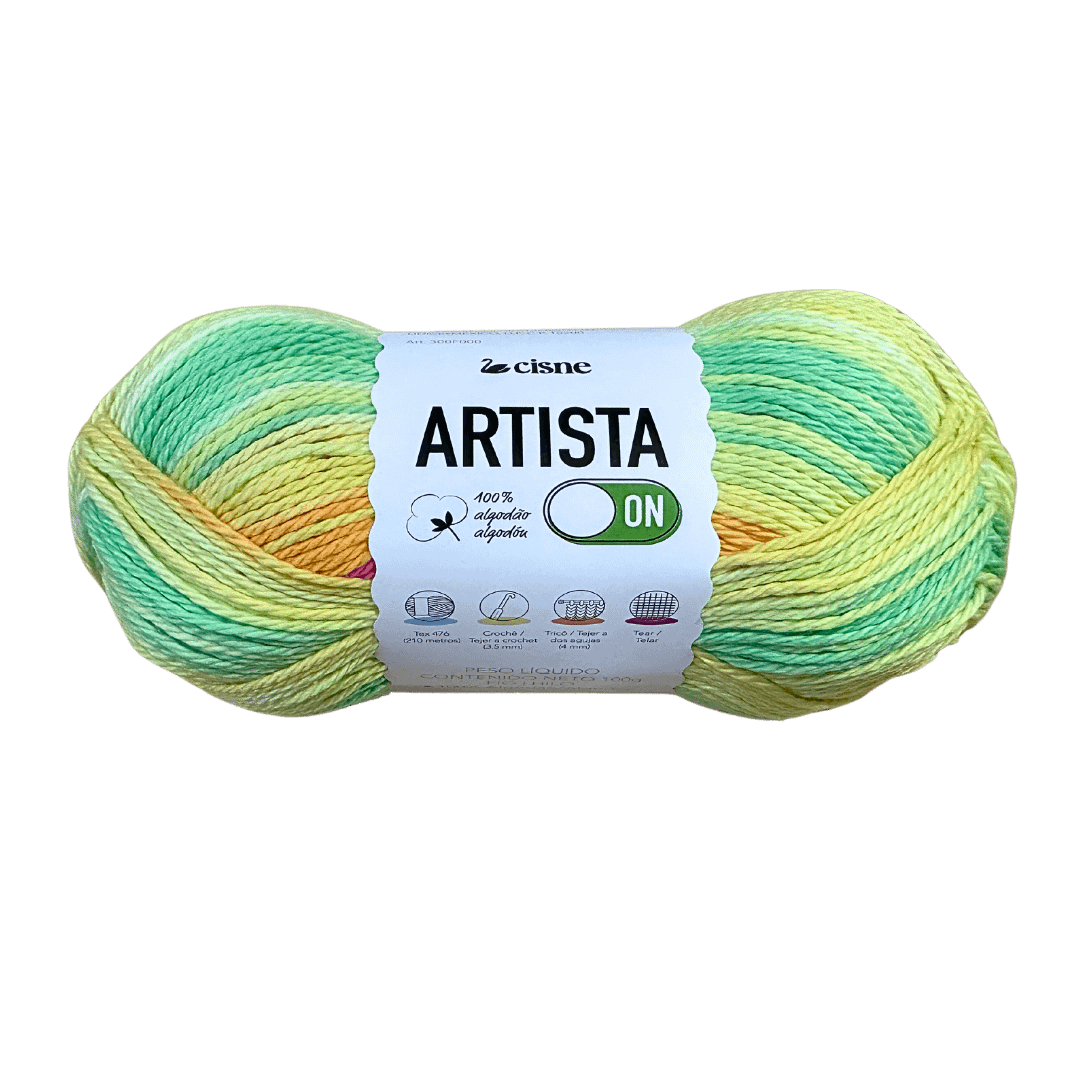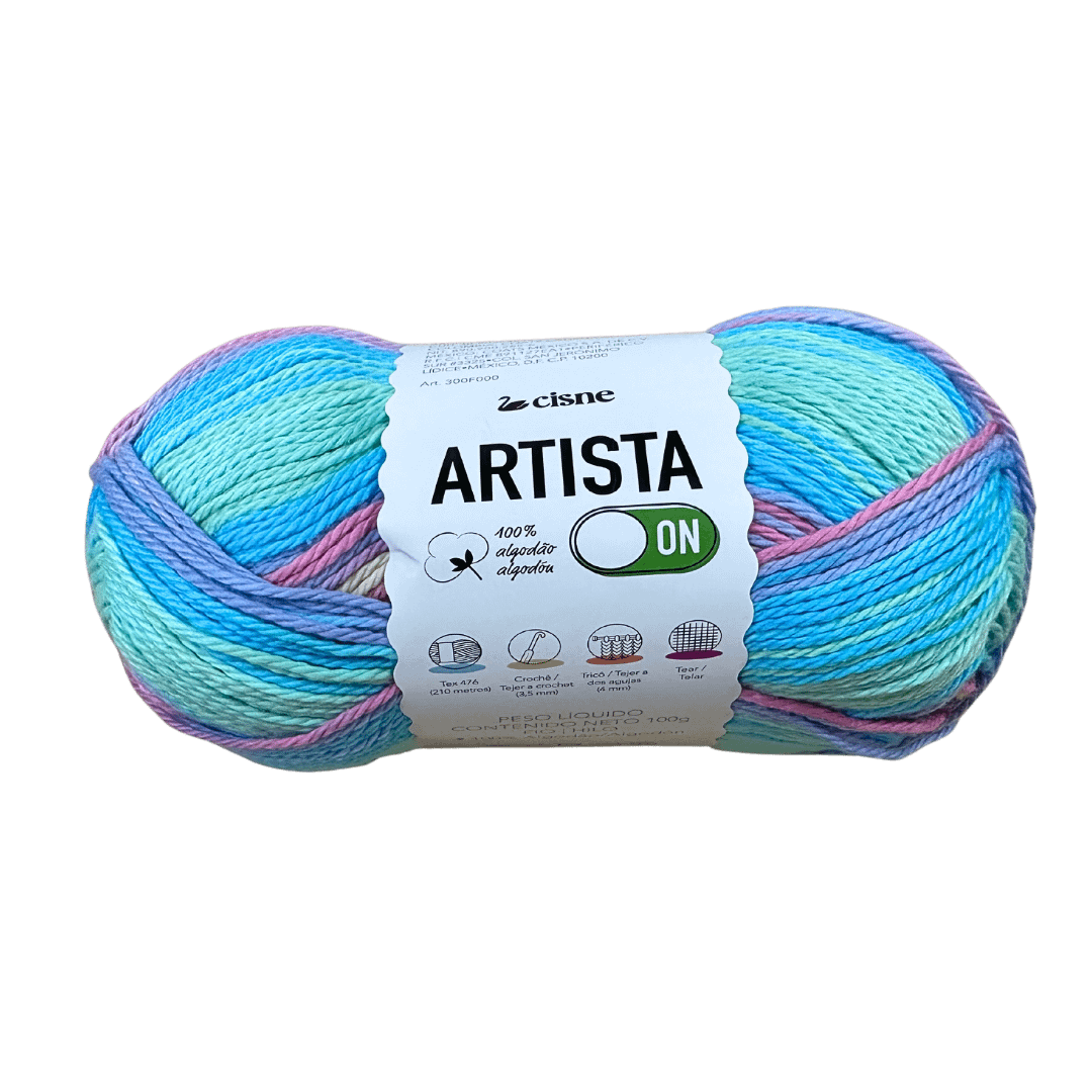 Off para el estrés diario y ON para la liberación creativa o creativo en ti! Swan Artist On tiene un efecto Batik (o batik), una técnica de teñido de telas hecho a mano, originario de la isla de Java, Indonesia. En el batik javanés, el efecto final es producido por teñido sucesivo del tejido, protegido por máscaras de cera, donde sólo se tiñen las partes no selladas por la cera. ¡Oh! Y además es 100% algodón y tiene un rendimiento excelente – es 210 metros en cada ovillo de 100 gramos! Ideal para crear piezas en crochet o en ¡tejer, ya sea para darle color al look o para darle un cambio de imagen a la decoración de tu hogar!