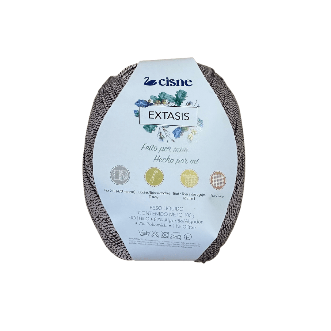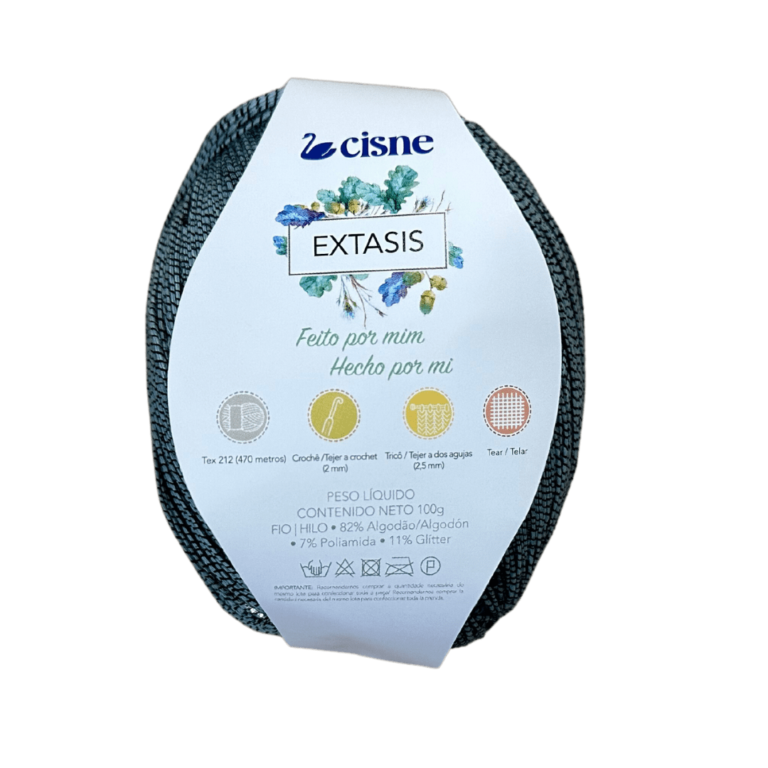 EXTASIS Swan Extasis es un hilo realmente diferente! Es un hilo fino extremadamente brillante, que se puede utilizar solo o combinado con otro alambre. Cuando se usan solas, las partes ganarán ligereza y mucho protagonismo. Ya, cuando se combina con otro hilo, el La pieza será más voluminosa y ganará un brillo elegante pero discreto. Seguimos destacando los ingresos! Hay 470 metros en una bola pequeña. de 100 gramos. Rinde mucho! Perfecto para crochet y tejido.