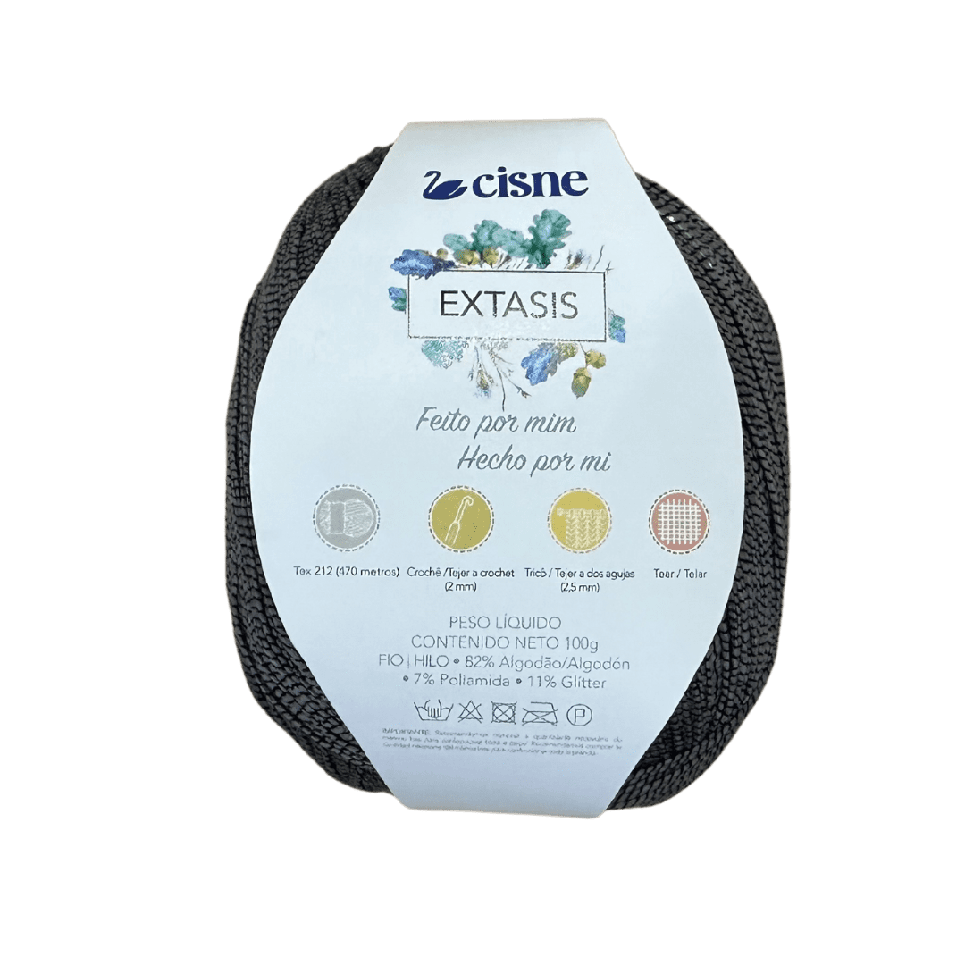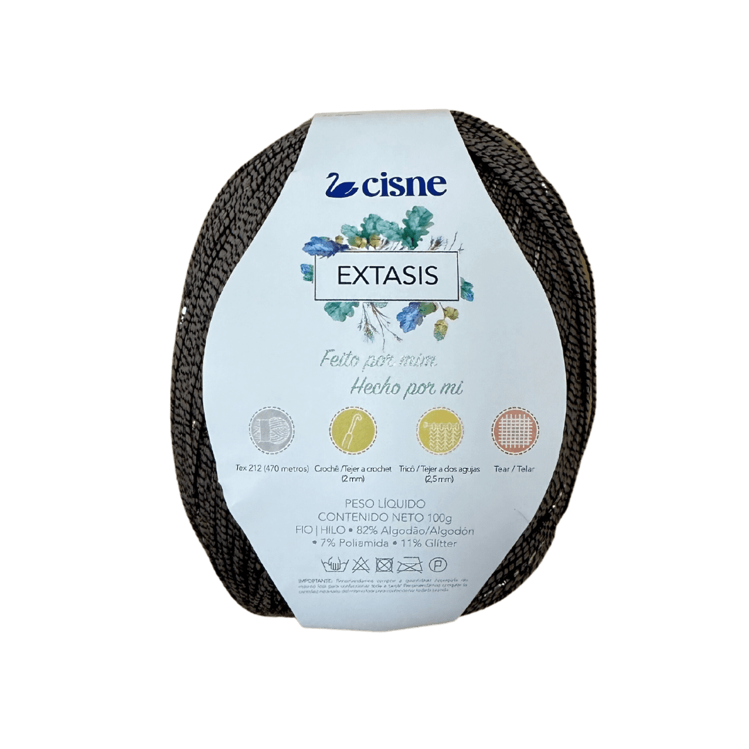 EXTASIS Swan Extasis es un hilo realmente diferente! Es un hilo fino extremadamente brillante, que se puede utilizar solo o combinado con otro alambre. Cuando se usan solas, las partes ganarán ligereza y mucho protagonismo. Ya, cuando se combina con otro hilo, el La pieza será más voluminosa y ganará un brillo elegante pero discreto. Seguimos destacando los ingresos! Hay 470 metros en una bola pequeña. de 100 gramos. Rinde mucho! Perfecto para crochet y tejido.