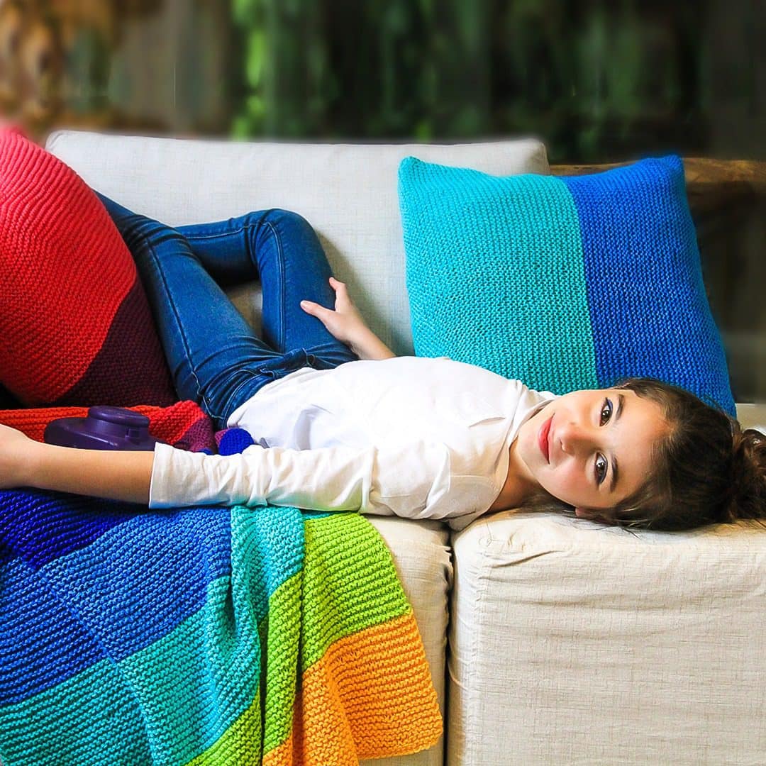 Manta e 2 almofadas coloridas – Cisne Multiarte